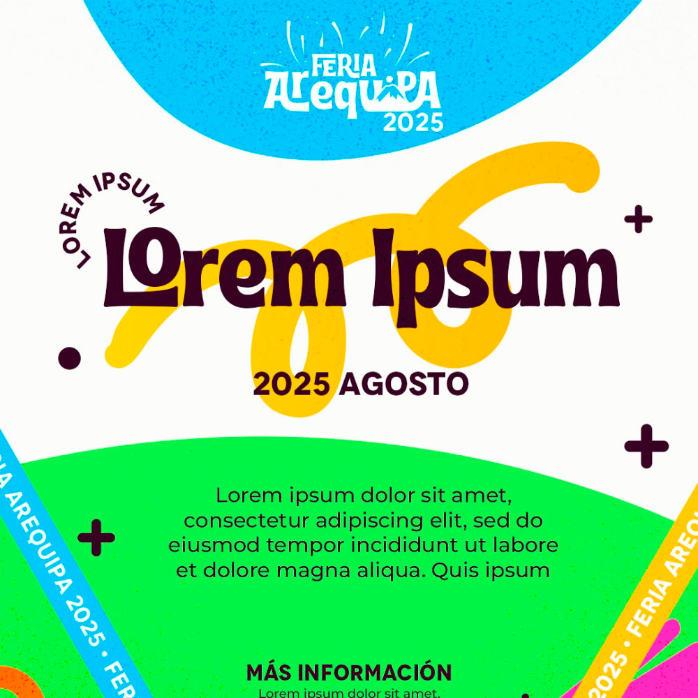 Tras años de trayectoria bajo otro nombre, la feria más representativa de la región se encontraba en plena transformación: cambios en su estructura, en su alcance y en su visión. Era el momento de que su identidad también evolucionara para reflejar esta nueva etapa. El proyecto dio vida a Feria de Equipa 2025, con un logotipo a la altura de la magnitud del evento, una paleta de colores alegre y festiva —rosado, amarillo y celeste— y elementos gráficos inspirados en cintas, movimiento y celebración. Todo pensado para transmitir el espíritu cultural y tradicional que la hace única. Hoy, su imagen no solo presenta una feria, sino que invita a vivirla: un punto de encuentro donde la tradición y la alegría se encuentran para celebrar lo mejor de la región.